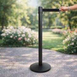 Colonnine segnapercorso Delimita è un sistema per regolamentare flussi di persone in fila con nastro riavvolgibile, ideale per centri commerciali, aeroporti, cinema, mostre, aree di accoglienza. il prezzo comprende n.1 base nera n.1 colonnina nera e n.1 nastro di 3 mt. che si riavvolge nella colonnina con meccanismo frenante.