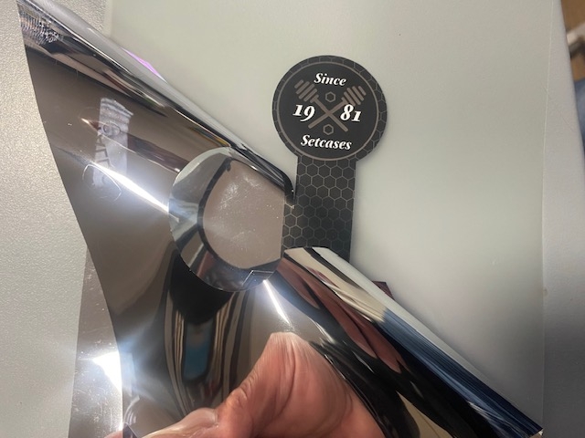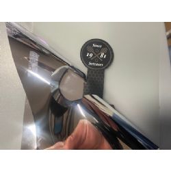 Pellicola in poliestere metallizzato, spessore nominale 55 μm, con finitura altamente riflettente a effetto specchio. Il supporto è accoppiato a un adesivo acrilico permanente hi-tack, progettato per garantire elevata adesione iniziale e stabilità nel tempo. Disponibile nelle colorazioni oro giallo e argento, entrambe realizzate con liner e retro metallizzato color argento.